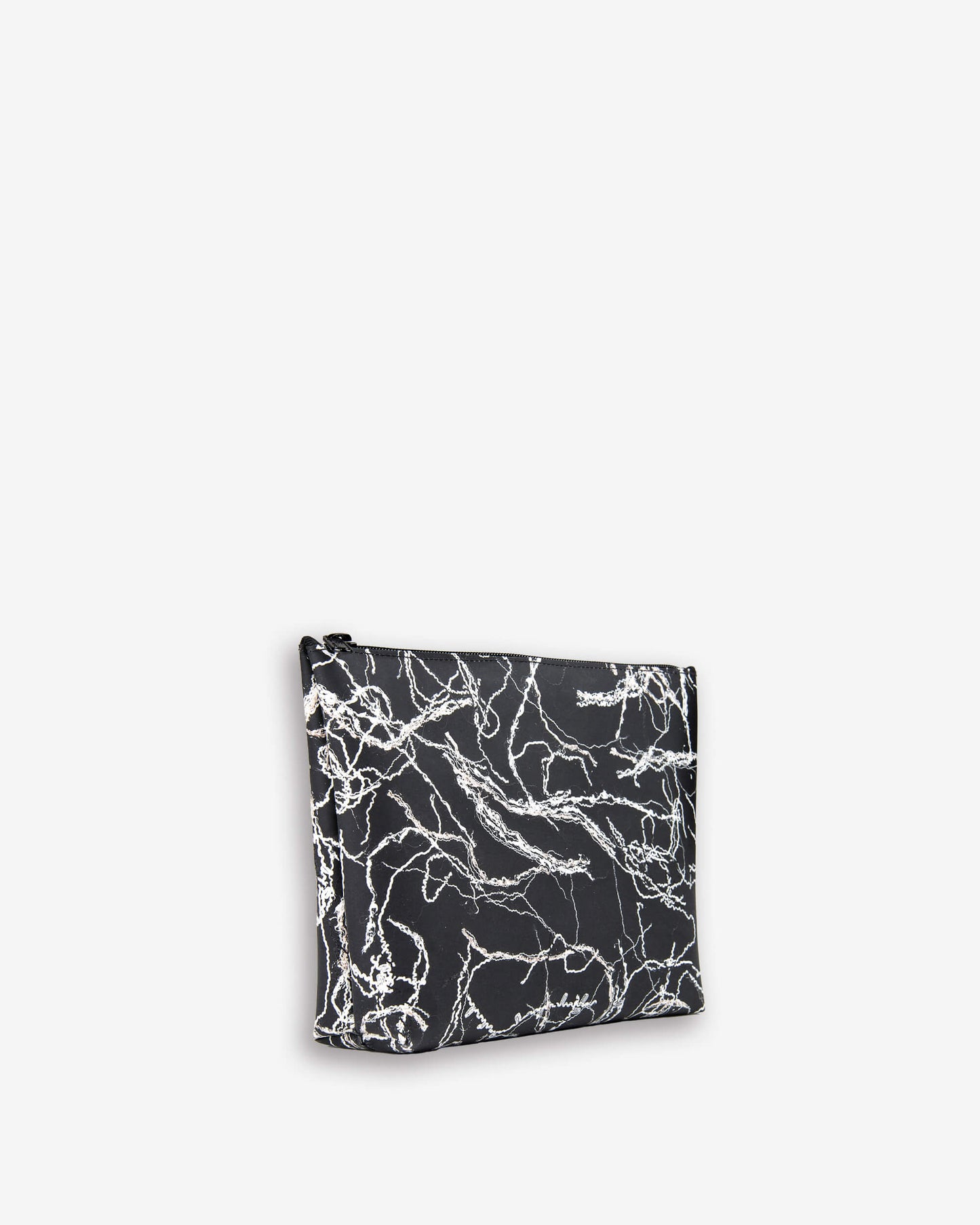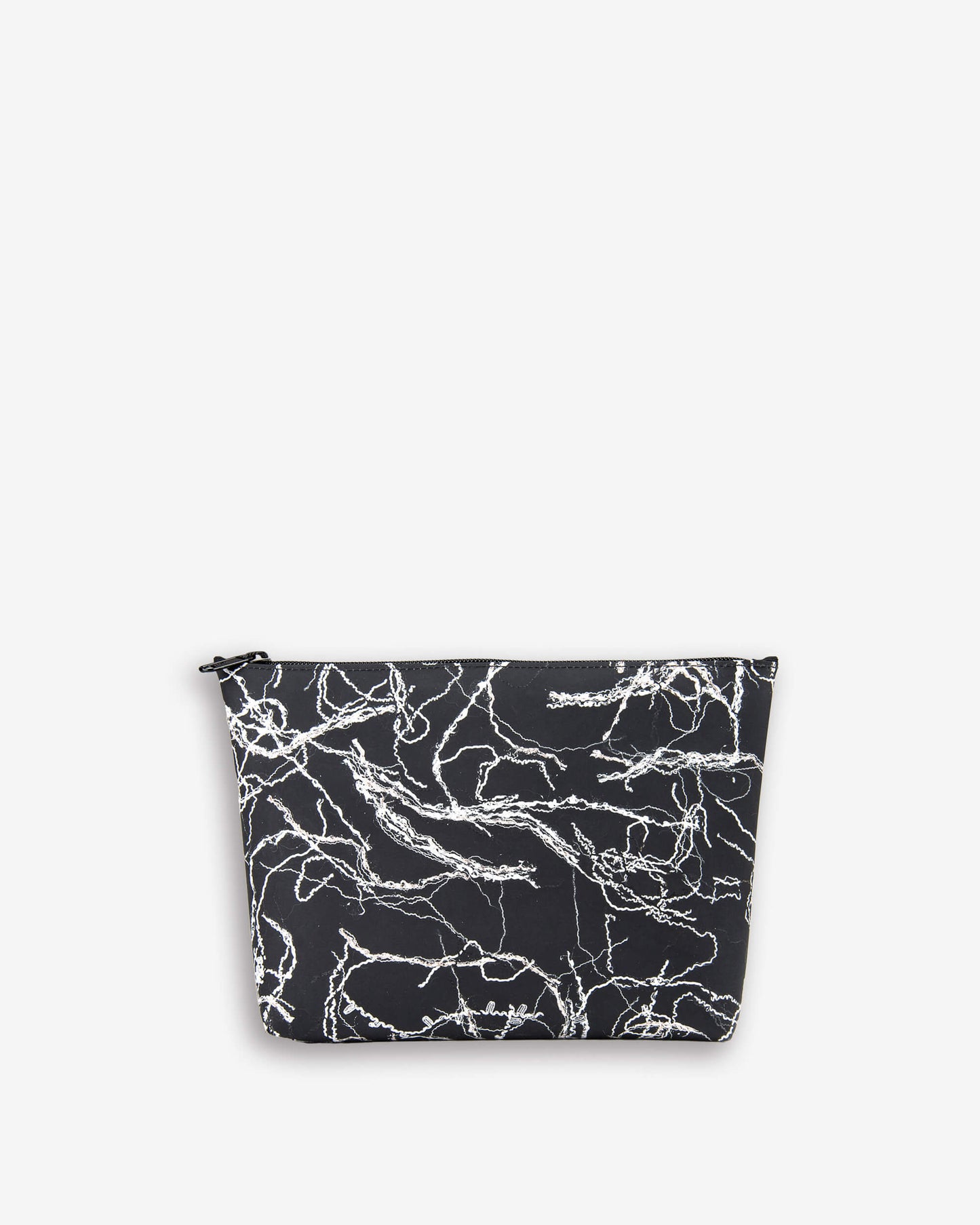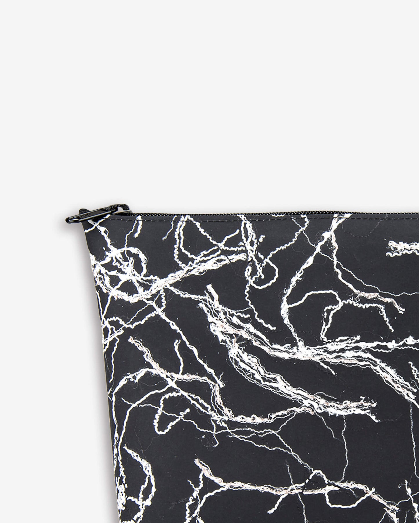 This pattern combines threads from deadstock fabrics with black polyurethane.