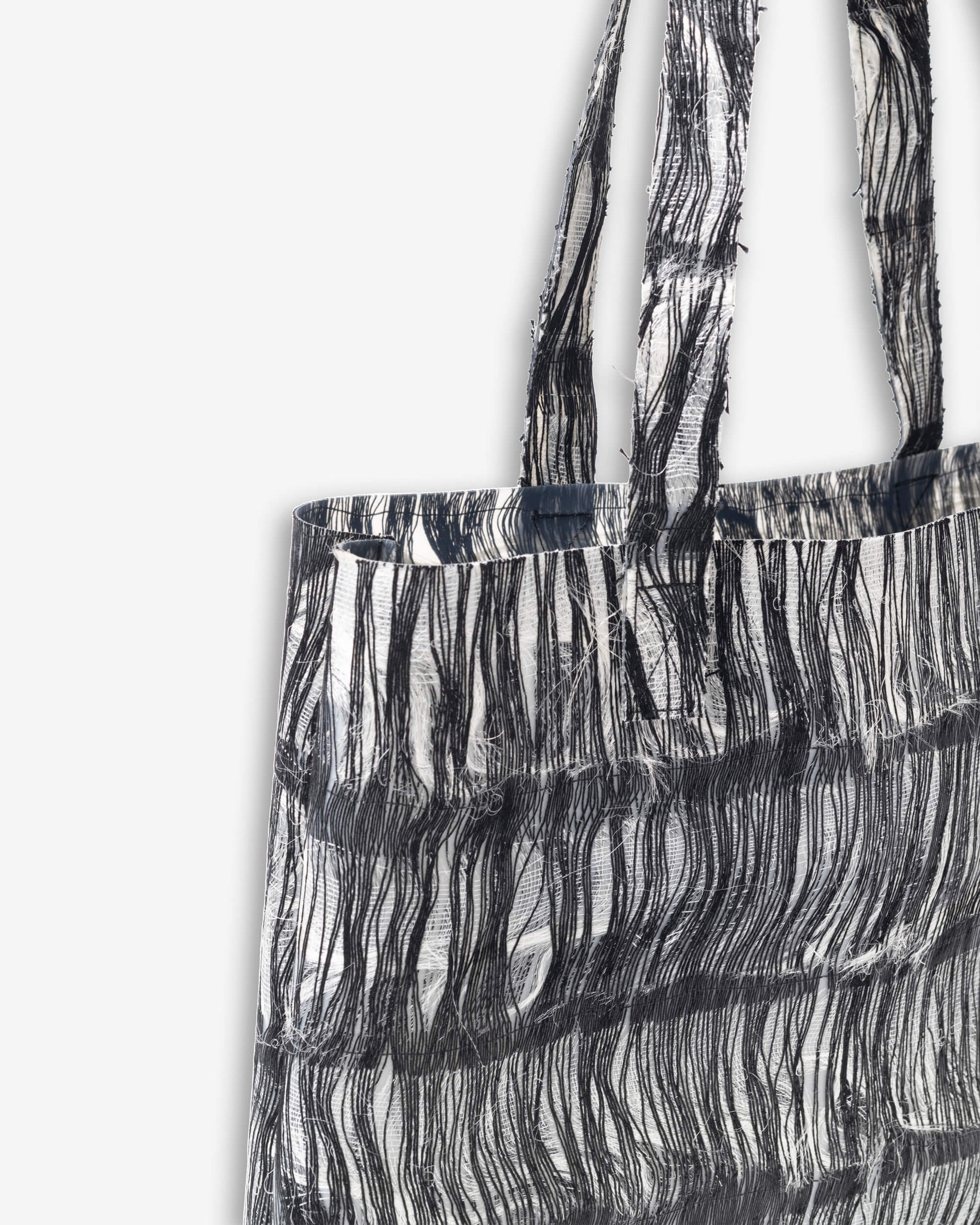 This pattern is created combining iridescent woven selvedges with pure polyurethane.