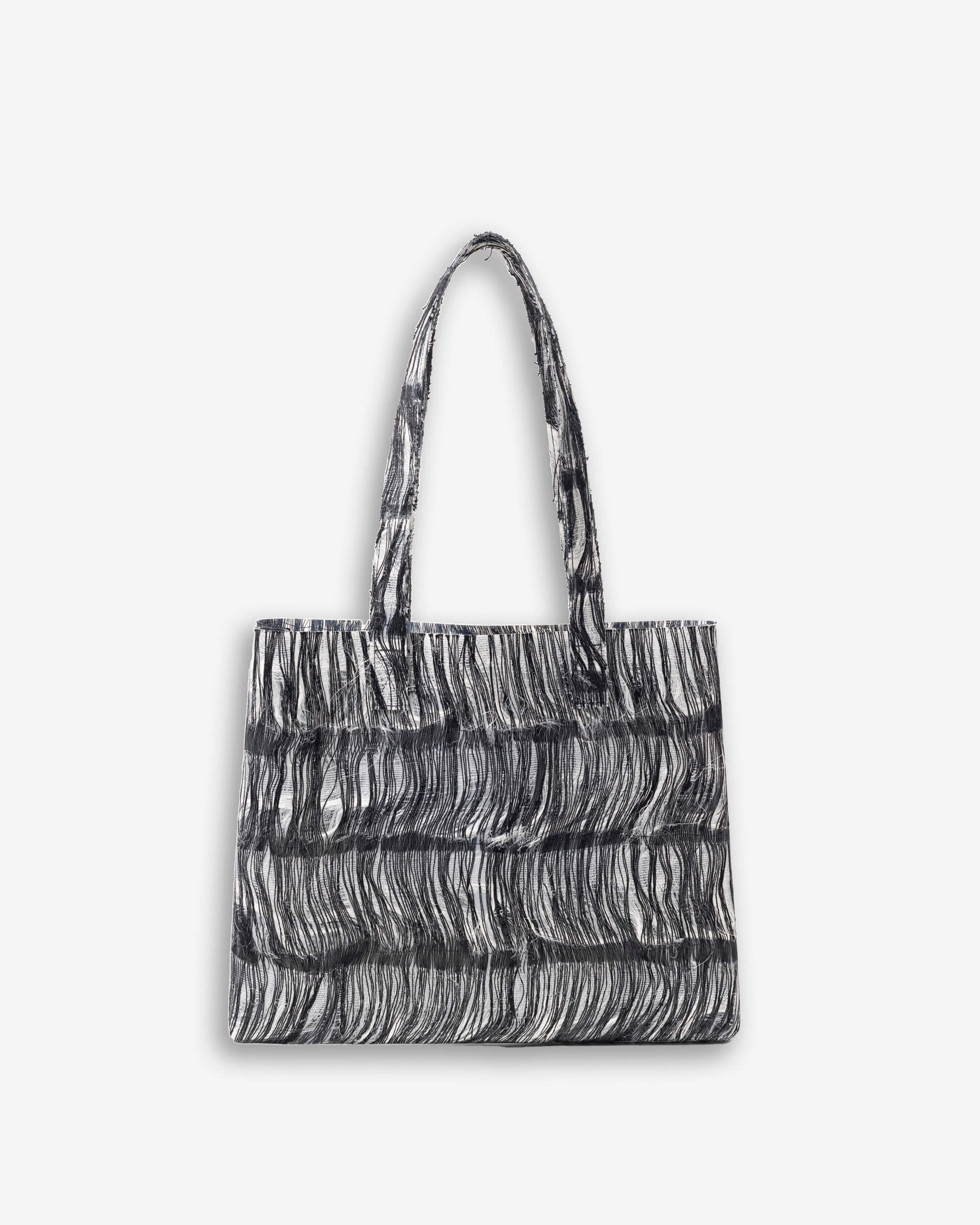 Tote bag with shoulder handles in handwoven selvedges.